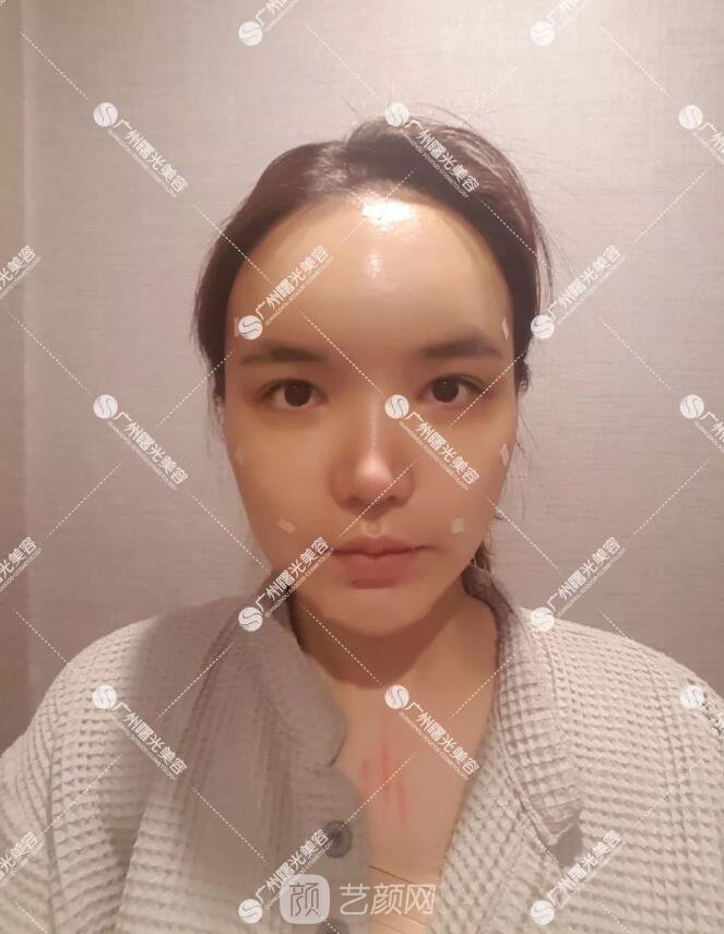 我做的基本上是多方面部了,有額頭、太陽穴、蘋果肌、面頰,用的是大腿內(nèi)側(cè)脂肪,醫(yī)生說這里的脂肪活性更高,容易存活。剛填充完感覺腫脹,創(chuàng)口不能碰水。