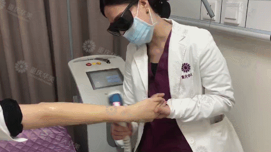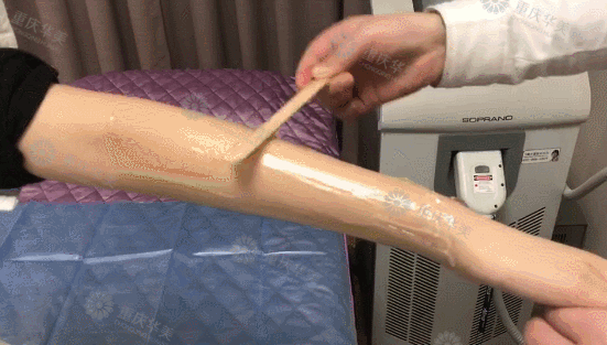 步驟四:激光調(diào)節(jié)頭在脫毛部位方向來回輕輕滑動,通常來回3-5次即可。調(diào)節(jié)有的反應為皮膚微微發(fā)紅,發(fā)燙。