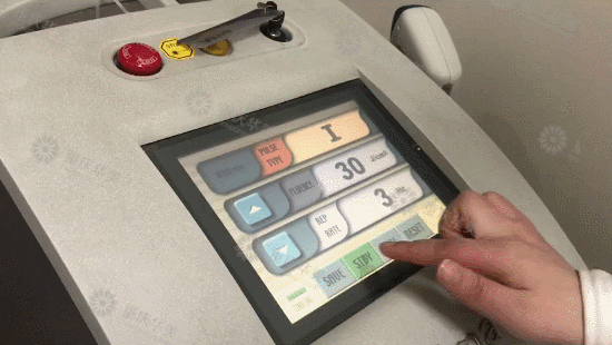 步驟三:調(diào)好手臂調(diào)節(jié)的頻率能量,能量從低往高調(diào),到皮膚忍受度即可。