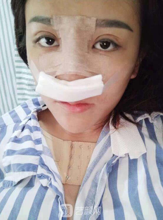 妹子在網上了解了很多相關醫(yī)院的資料以后,選擇了一家心儀的醫(yī)院,在和醫(yī)生面診時,準確說出了自己的隆鼻意愿,醫(yī)生根據她的理想果,以及鼻部基礎,制定了假體隆鼻手術以及耳軟骨墊鼻尖手術。手術第一天的果了,就是這樣的。