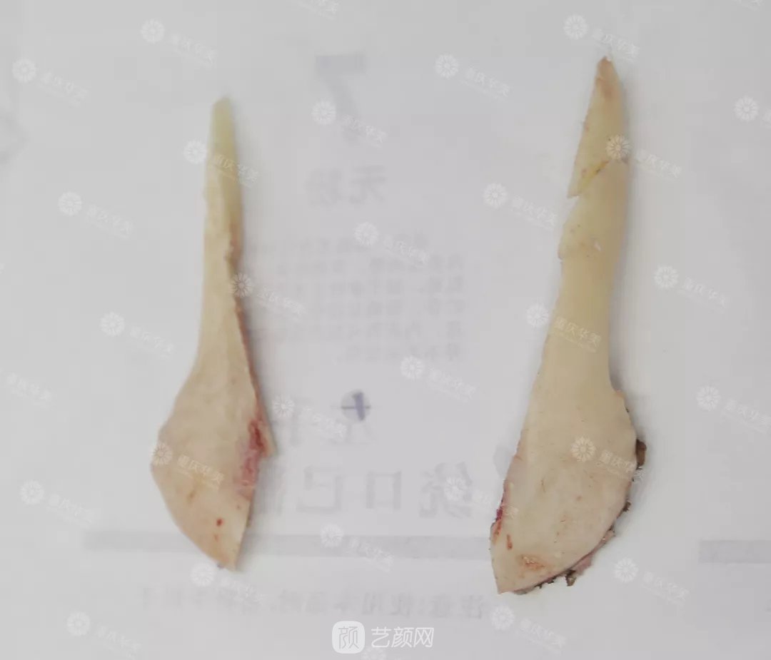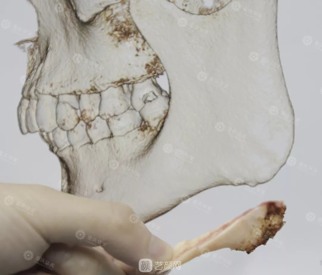 因此,醫(yī)生在做7度改臉型時,左右兩側(cè)截取的骨片大小略有不同。