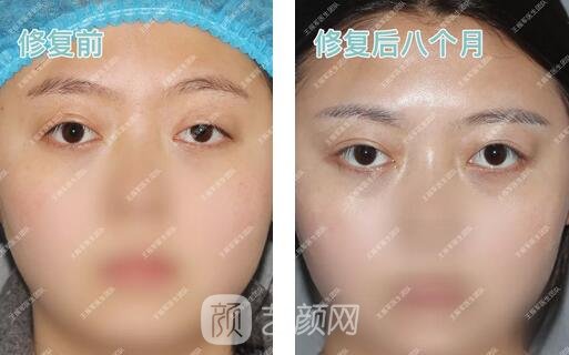 手術后7個半月雖然小姐姐的雙眼還不夠,但與手術前相比提升還是很明X的,下垂的上眼瞼上提了,雙眼越來越明亮有神了,還產(chǎn)生了相對自然的雙眼皮,小姐姐對手術調(diào)節(jié)結(jié)果十分喜歡,一再向王院長表示感謝。