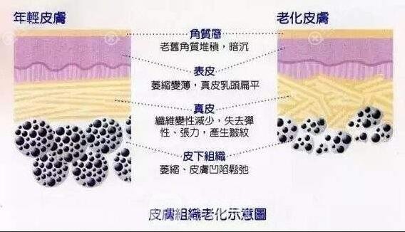 皮膚組織老化示意圖
