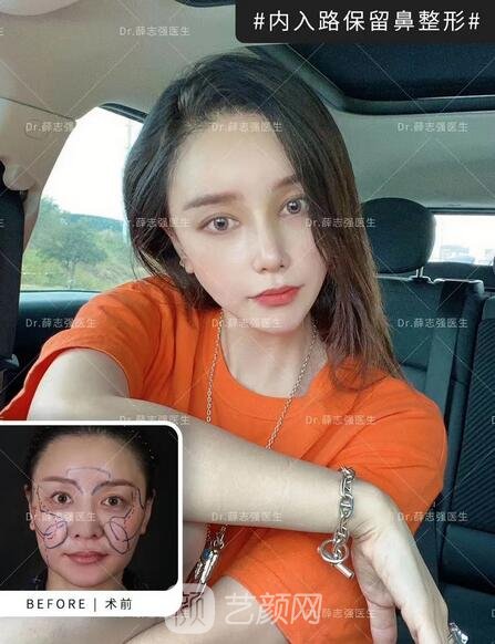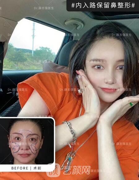 她本人是希望面部輪廓立體精致一些,很喜歡Angelababy的鼻型,鼻尖想要盒鼻(也叫鉆石鼻尖),喜歡鼻梁有明X的雙C線,還有漂亮的海鷗線,總之對鼻子的細(xì)節(jié)要求是比較高的。